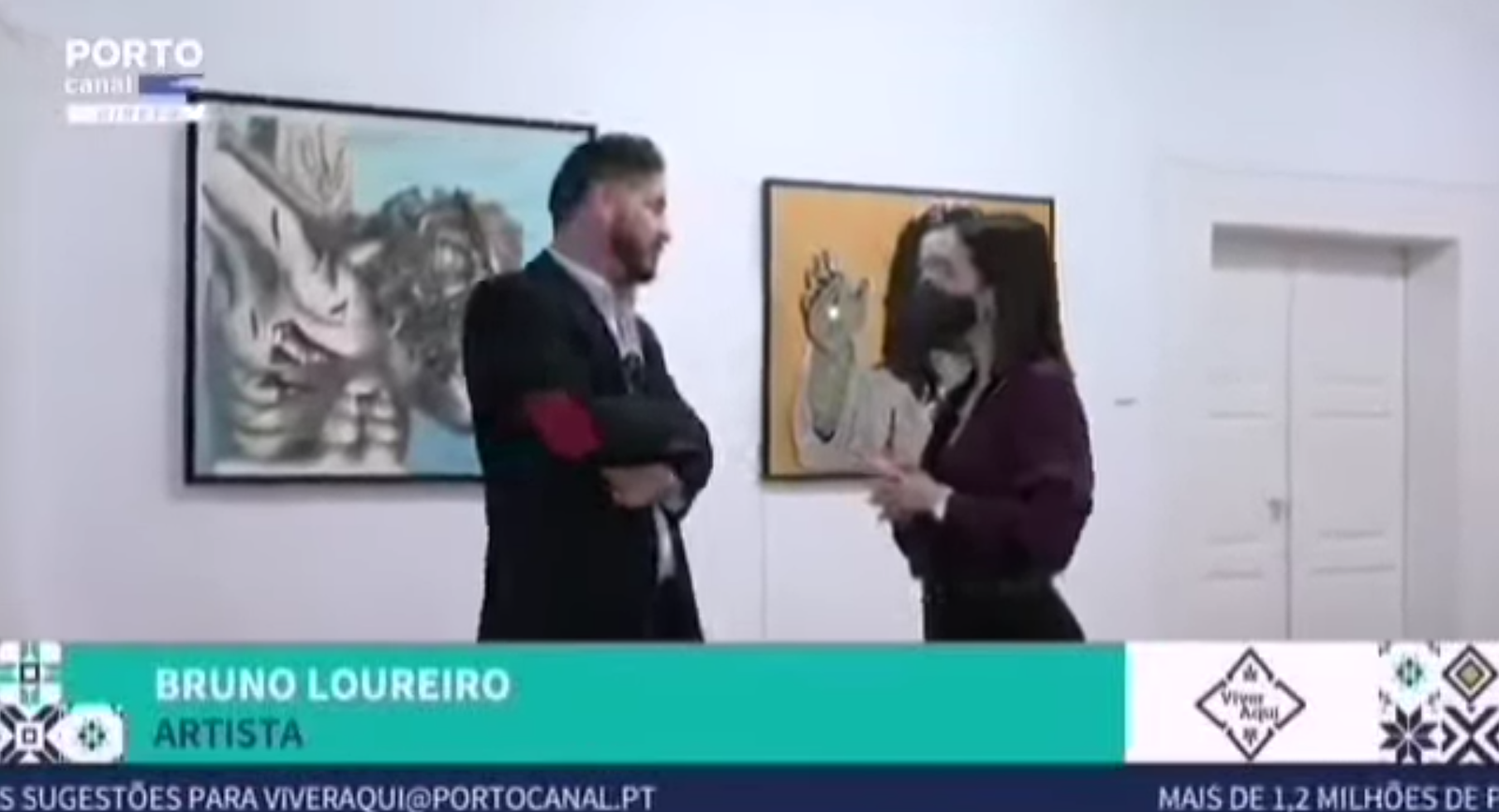 A entrevista contou com o artista e comissário da exposição, Santiago Belacqua , e também com o artista Bruno Loureiro.